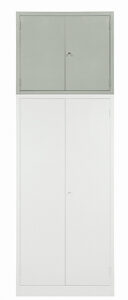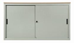 ![]() i sopralzi possono anche essere posizionati a terra, come librerie basse, dotandoli di top di finitura in laminato colore grigio chiaro o noce, oppure in lamiera colore grigio chiaro |